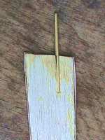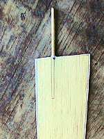 A continuación se hace el corte en el que se aloja el eje, y previa lijada se encola éste con Epoxi. En cuanto haya fraguado, lijamos y damos una mano liviana de dope, a fin de que las pelusas de la madera puedan lijarse una vez seco el dope.